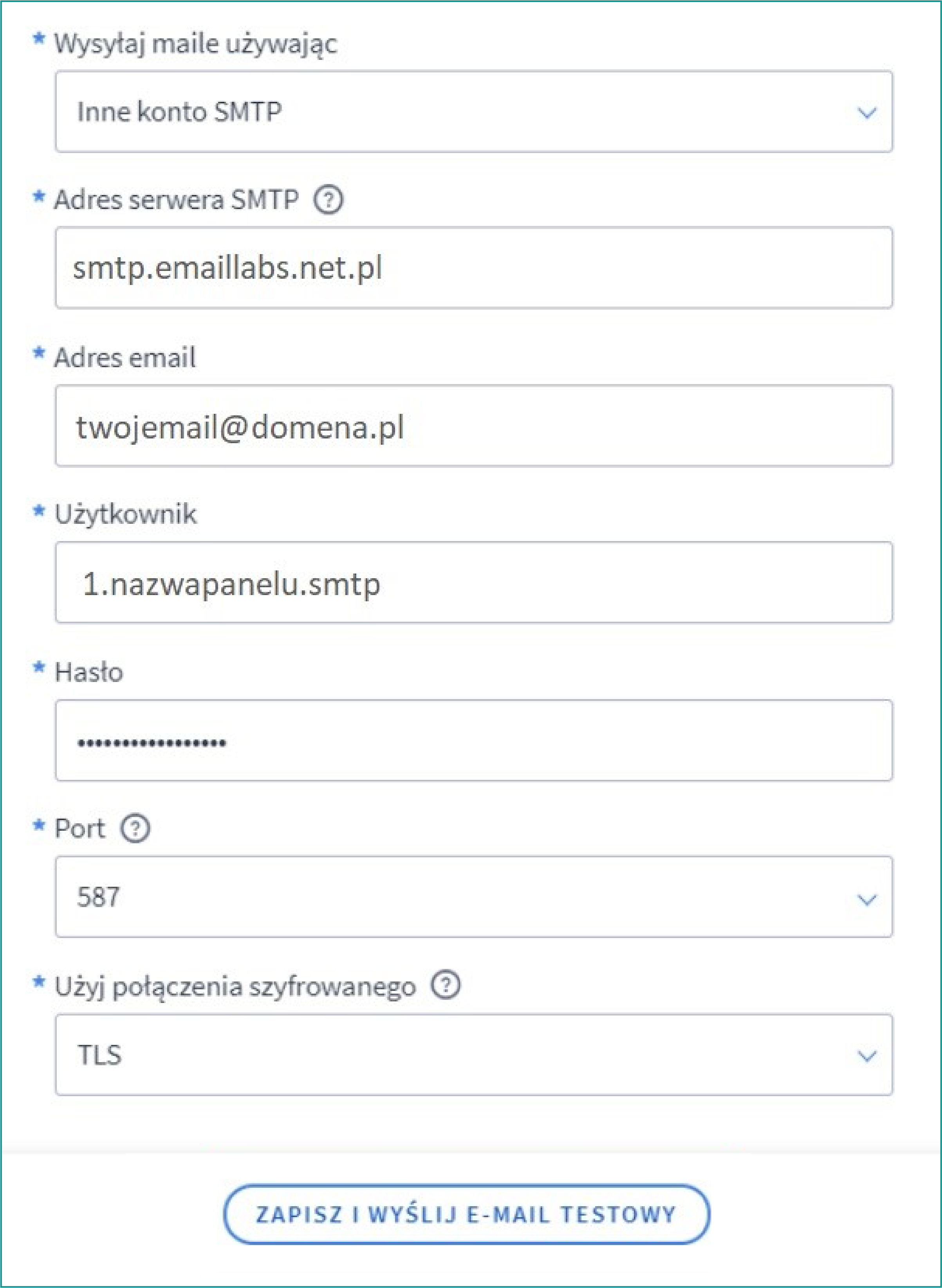 * **Adres serwera SMTP:** `smtp.emaillabs.net.pl`